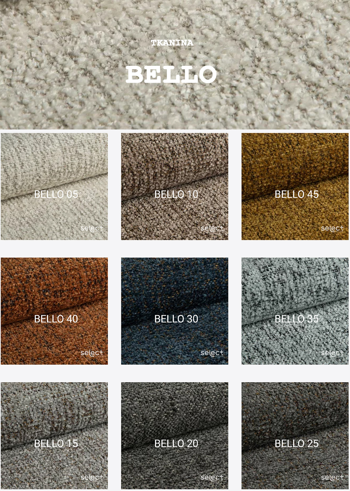 BELLO to kwintesencja piękna, wyrafinowanej elegancji i nowoczesnego designu. Stworzona z myślą o najbardziej wymagających użytkownikach, spełnia najwyższe standardy zarówno pod względem estetycznym, jak i funkcjonalnym. Jest to idealny wybór dla osób ceniących styl, komfort i trwałość, a także dla tych, którzy pragną nadać swoim wnętrzom wyjątkowy, nowoczesny charakter. Struktura tkaniny BELLO jest niepowtarzalna - przestrzenna, wyrazista i pełna głębi. Jej powierzchnia zachwyca subtelną miękkością, zapewniając przyjemne doznania dotykowe. Nieregularny splot w połączeniu z kontrastową nicią tworzy intrygujący efekt wizualny, który dodaje materiałowi dynamiki i trójwymiarowości. Dzięki temu BELLO nie tylko doskonale prezentuje się na meblach tapicerowanych, ale także wyróżnia się na tle innych tkanin obiciowych. Oprócz wyjątkowego wyglądu, tkanina charakteryzuje się także wysoką jakością i trwałością, co czyni ją doskonałym wyborem zarówno do wnętrz prywatnych, jak i przestrzeni komercyjnych. BELLO to synonim nowoczesnej elegancji, który doda każdemu wnętrzu wyrafinowanego charakteru.