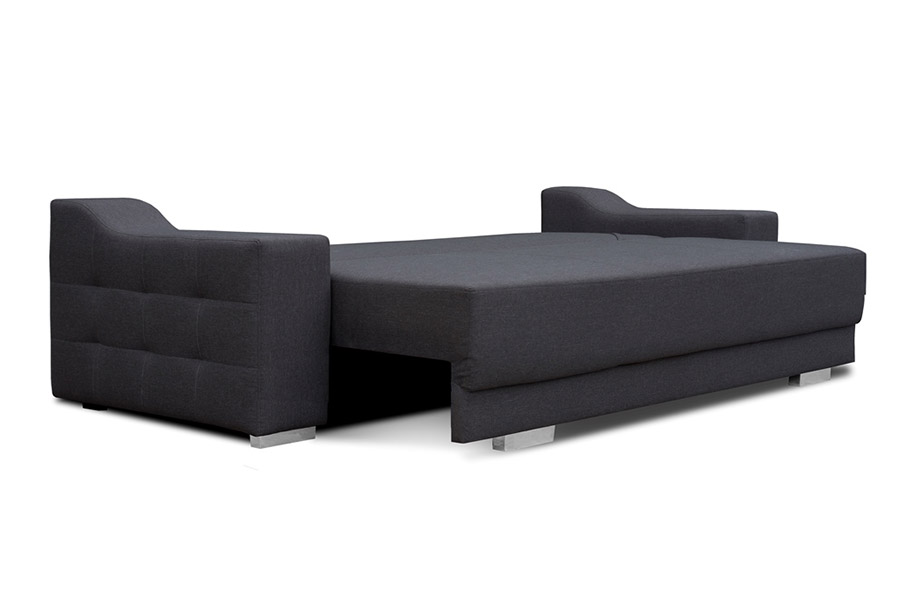 Nowoczesna kanapa Rodos to elegancki mebel, który łączy prostą formę z subtelnymi detalami, pasując do nowoczesnych i minimalistycznych wnętrz. Charakteryzuje się czystymi liniami oraz pikowaniem na siedzisku i poduchach, które dodaje jej elegancji i wyjątkowego charakteru. To doskonały wybór dla osób szukających komfortu i stylowego wyglądu w jednym. Kanapa posiada system rozkładania DL automat, co pozwala na łatwe przekształcenie jej w wygodne łóżko. Funkcja rozkładania sprawia, że sofa staje się wielofunkcyjna, doskonała zarówno do codziennego wypoczynku, jak i nocnego spania. Luźne poduchy oparciowe zapewniają odpowiednie podparcie pleców oraz możliwość dopasowania do indywidualnych potrzeb. Dodatkowo, kanapa ma pojemnik na pościel, co ułatwia przechowywanie poduszek, kołder i innych tekstyliów, pomagając utrzymać porządek w pokoju. Prosty design z funkcjonalnością, oferując wygodę na co dzień oraz komfort podczas nocnego wypoczynku. Pikowanie na siedzisku i poduchach nadaje jej niepowtarzalnego stylu, który pasuje zarówno do nowoczesnych, jak i klasycznych wnętrz.