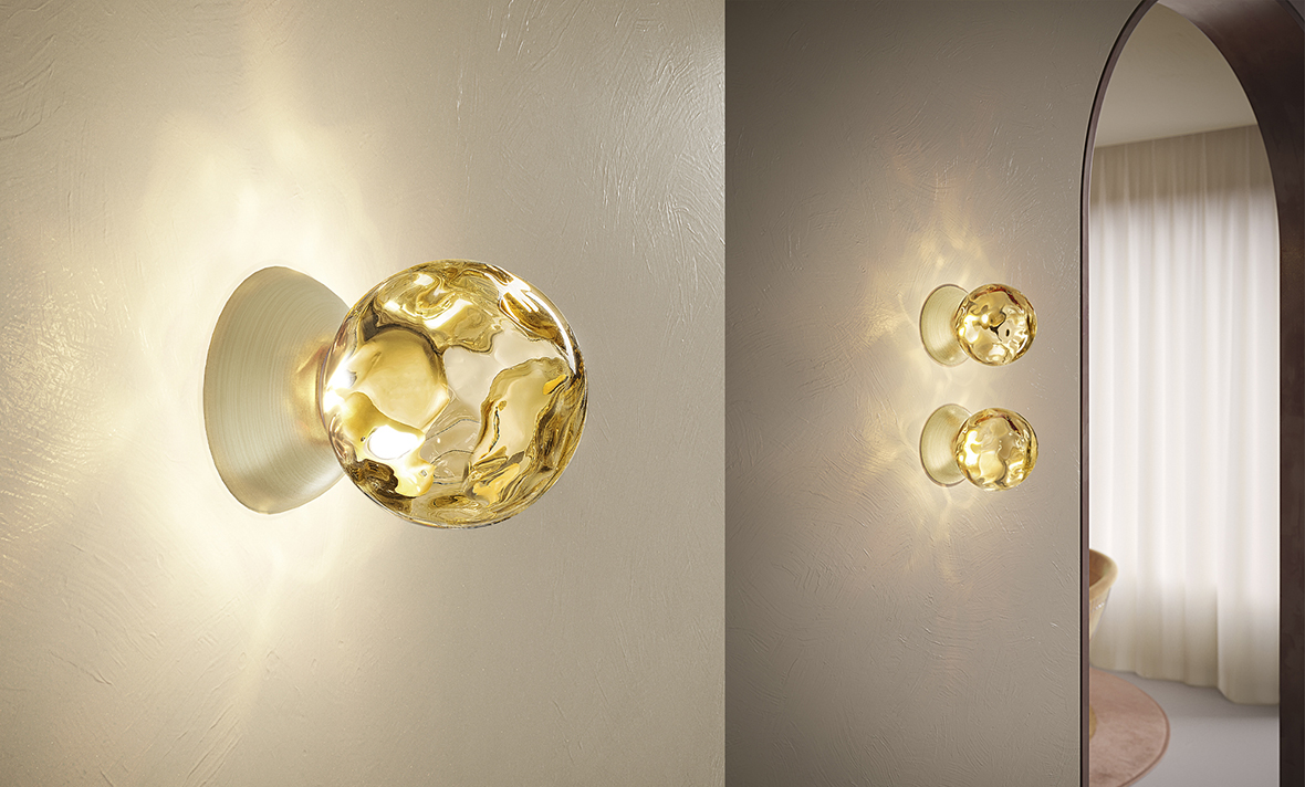 Tradycja ręcznego rzemiosła z dmuchanego szkła rodzi Murané, serię opraw do montażu jako pojedyncze zawieszenia lub niestandardowe zestawy, na powierzchni lub jako częściowo zagłębione oprawy do montażu na ścianie i suficie. Kulisty dyfuzor z przezroczystego szkła z brązu jest ręcznie wykonany z falistym efektem o wspaniałym efekcie dekoracyjnym. Źródło LED jest minimalne i ukryte w poliwęglanowej osłonie, która zapewnia optymalne rozproszenie światła. Wersje podwieszane są dostępne z daszkiem indywidualnym lub bez, w celu połączenia z daszkami wpuszczanymi lub klastrowymi.