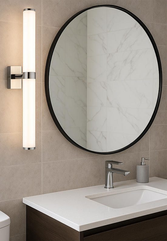 Kinkiet łazienkowy BATUMI 8925. To połączenie chromowanego stelażu wykonanego ze stali z szklaną tubą w kolorze opal połysk. Stylowa lampa, która świetnie rozświetli przestrzeń w Twojej łazience. Lampa jest szczelna i posiada IP444, a zintegrowany moduł LED ma barwę 3000K. Postaw na szyk połączony z prostotą, klasykę z minimalizmem – szklana Tuba, charakterystyczny stelaż i opcja montażu zarówno w pionie jak i poziomie. Kinkiety Batumi sprawdzą się także w salonie i na korytarzach.