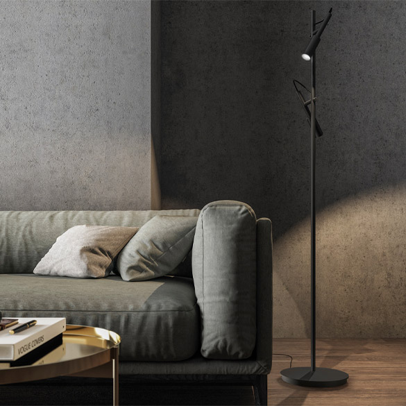 - Oprawa podłogowa do wnętrz, z odchylanym strumieniem światła.