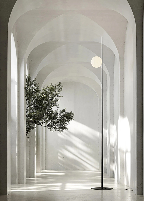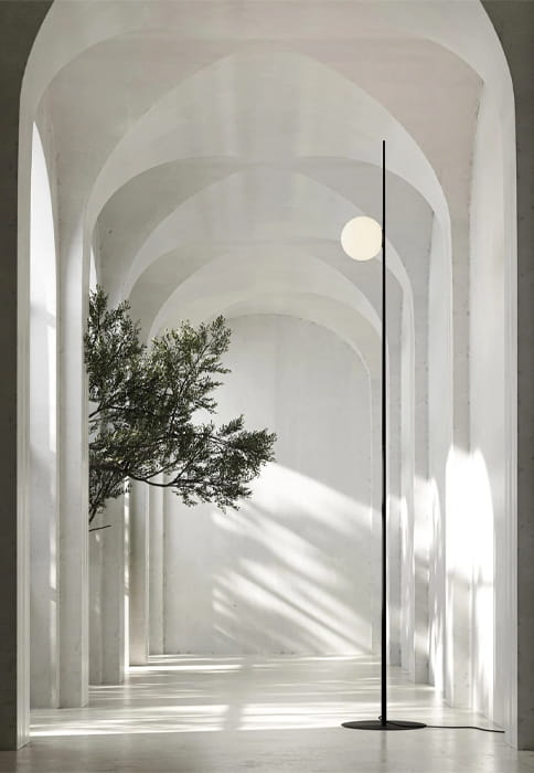 Źdźbło trawy z kroplą rosy i idealnie wyważoną, odblaskową kulą nad nim. Atmosphere to prosta, minimalistyczna lampa, która łączy walory estetyczne i dekoracyjne z funkcjonalnością, zarówno wewnątrz, jak i na zewnątrz, zapewniając miękkie, otulające światło.