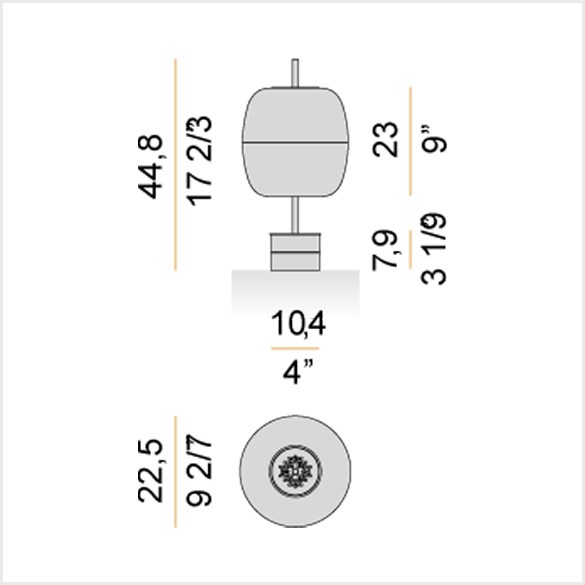 - Metalowa podstawa z wykończeniem farbą poliakrylową w kolorze matowej czerni lub matowego mosiądzu, ze zintegrowanym przyciskiem ściemniacza.