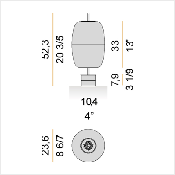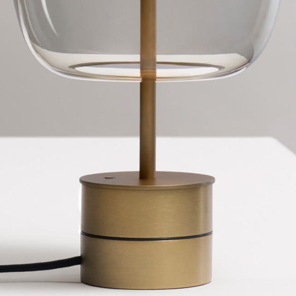 - Metalowa podstawa z wykończeniem farbą poliakrylową w kolorze matowej czerni lub matowego mosiądzu, ze zintegrowanym przyciskiem ściemniacza.