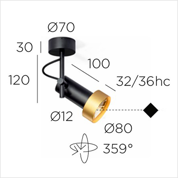 Lampa sufitowa wewnętrzna 2THIRTY-C1 czarno-złota - LED 10W 2700K 1000lm 24° 230V IP50 - Trizo21