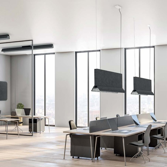 Zrównoważony rozwój, akustyka i oświetlenie w jednym rozwiązaniu Przyjemne rozwiązania oświetleniowe i dźwiękowe. Wszystko w idealnej harmonii. To BPM Acoustic, innowacyjna odpowiedź na specyficzne oświetlenie w hałaśliwych miejscach i tam, gdzie cisza i spokój są niezbędne. BPM Acoustic charakteryzuje się również awangardowym projektem paneli, z ukrytym rozwiązaniem oświetleniowym, aby uzyskać ciche otoczenie w dyskretny sposób. Innym plusem jest zrównoważony rozwój.