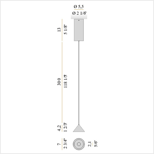 - Osłona zasilająca z uchwytem sufitowym, wykonana z blachy trawionej i wytłaczanego aluminium, z wykończeniem farbą poliakrylową w kolorze matowej czerni lub brązu.