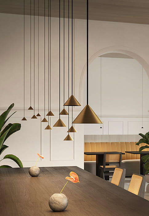Rendez-vous to oprawa oświetleniowa o minimalistycznych wymiarach, zaprojektowana w złotych proporcjach. Czerpiąc inspirację z koncepcji „spotkania”, może być stosowana pojedynczo lub w wielu kompozycjach scenicznych, w grupach lub liniowo, co można uzyskać dzięki specjalnie zaprojektowanym osłonom i akcesoriom. Mała, stożkowa głowica z odlewu aluminiowego jest dostępna w kolorze satynowej czerni i brązu; kryje w sobie źródło światła LED i soczewkę kierującą wiązkę światła. Dostępna w wersji do szynoprzewodów 48 V z serii Street..