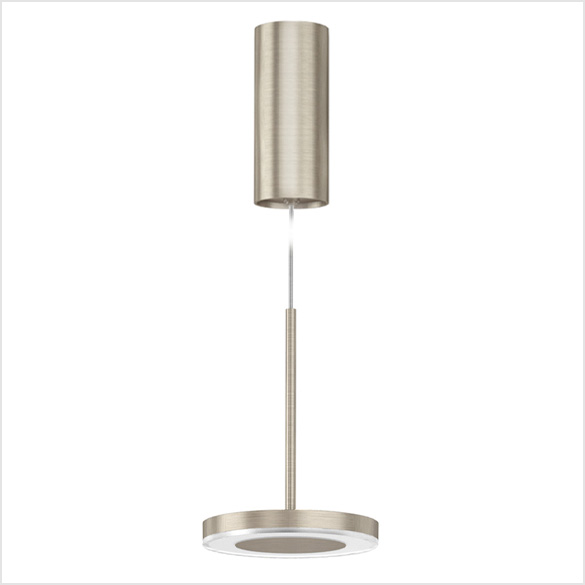 Lampa wisząca, stołowa i ścienna (dostępna również do wbudowania) z odlewaną aluminiową głowicą. Dyfuzor z materiału akrylowego ze świecącym obwodem. Zdecentralizowane ramię stożkowe, regulowana głowica i technologia Step DIM z 5 ustawieniami intensywności światła charakteryzują wersje stołowe i ścienne, te ostatnie również z przegubem u podstawy, dla większej elastyczności pozycjonowania. Wersja zwieszana ma stałą głowicę z centralnym oczkiem, jest dostępna w wersji ze światłem bezpośrednim i pośrednim. Dostępne są wykończenia w kolorze białym, czarnym, tytanowym, brązowym i matowym mosiądzem.