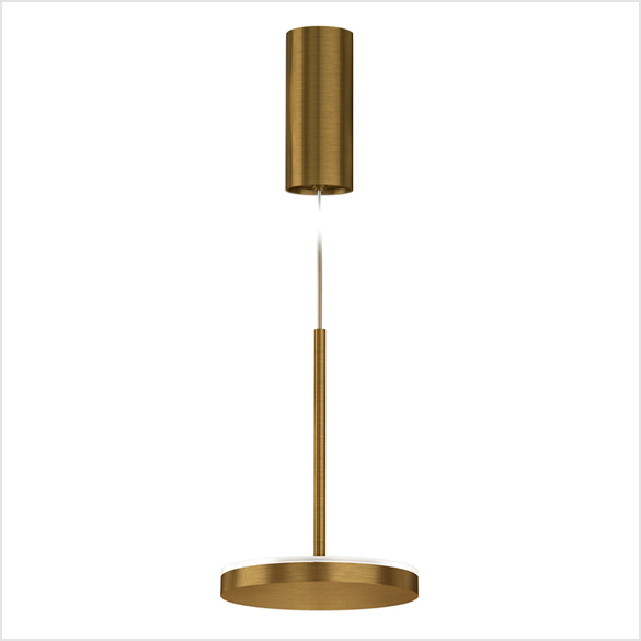 Lampa wisząca, stołowa i ścienna (dostępna również do wbudowania) z odlewaną aluminiową głowicą. Dyfuzor z materiału akrylowego ze świecącym obwodem. Zdecentralizowane ramię stożkowe, regulowana głowica i technologia Step DIM z 5 ustawieniami intensywności światła charakteryzują wersje stołowe i ścienne, te ostatnie również z przegubem u podstawy, dla większej elastyczności pozycjonowania. Wersja zwieszana ma stałą głowicę z centralnym oczkiem, jest dostępna w wersji ze światłem bezpośrednim i pośrednim. Dostępne są wykończenia w kolorze białym, czarnym, tytanowym, brązowym i matowym mosiądzem.