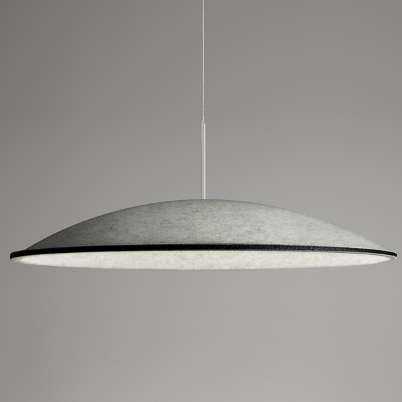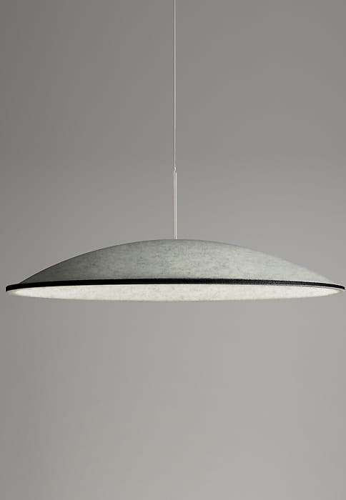 - Absorbujący dźwięk abażur firmy Slalom składający się w 75% z tworzywa sztucznego pochodzącego z recyklingu pokrytego w 96% filcu z recyklingu.