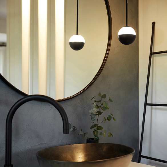 Pośrednia, ściemnialna rzeźba świetlna LED zawieszona nad głową, tworzy magiczny efekt. Lampy wiszące Alfi prezentują swoją wszechstronność jako galaktyka kul lub pojedyncza lampa planetarna.