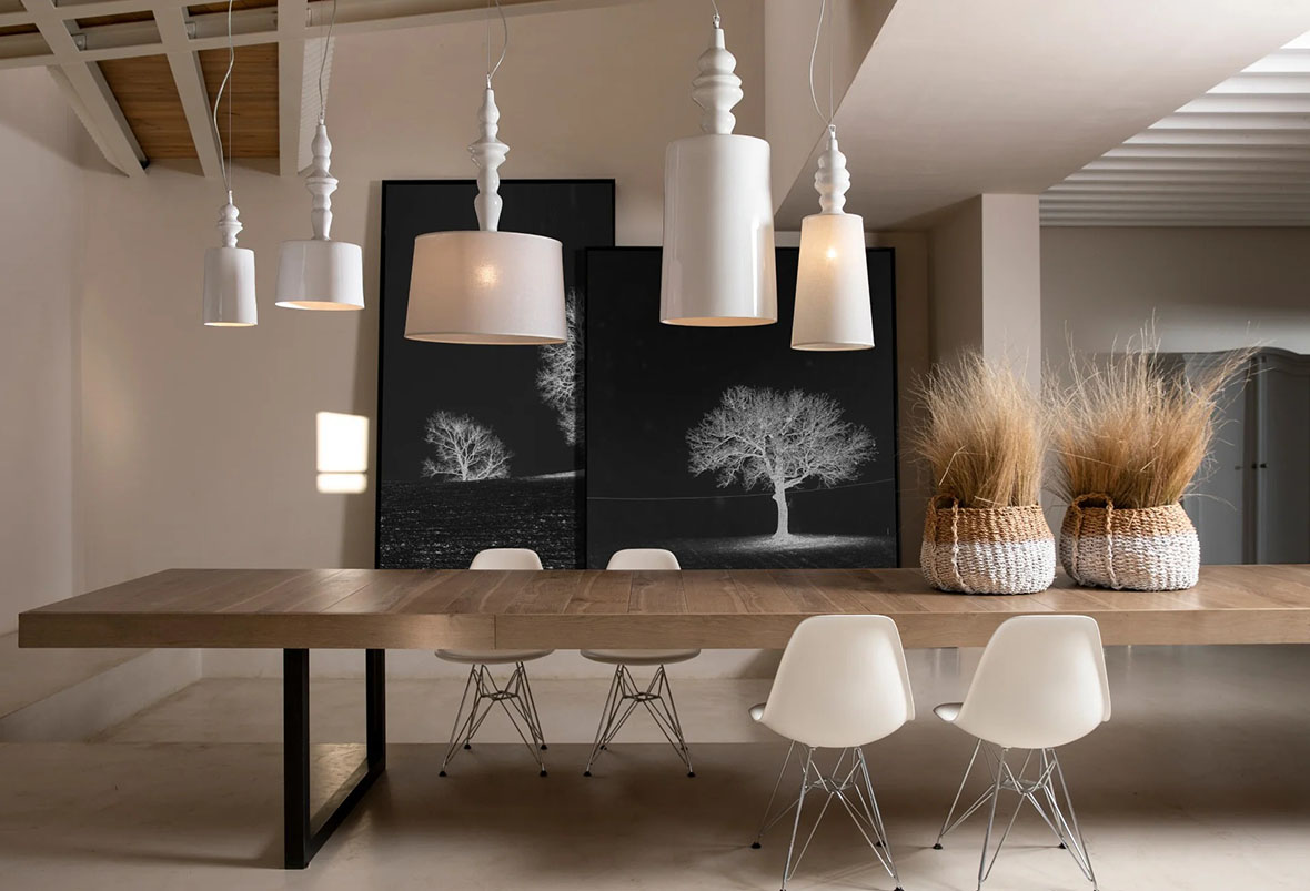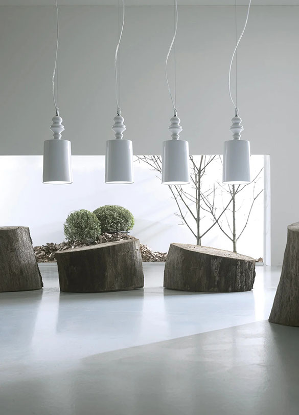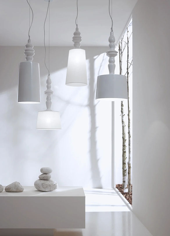 Alibababy SE1017BC lampa sufitowa wisząca firmy Karman to lampa wykonana z błyszczącej białej ceramicznej struktury i białego lnianego klosza. Zainspirowana nazwą i profilem orientalnych bajek z tysiąca i jednej nocy, Alì & Babà jest najbogatszą kolekcją firmy Karman pod względem rozmiaru i wariantów, wszystkie o równym temperamencie. Jakby „Turn On Sesame” stało się życzeniem, a także sugestią. (W białej emaliowanej ceramice, jest również dostępna z lnianym kloszem dla bardziej rozproszonego światła.)