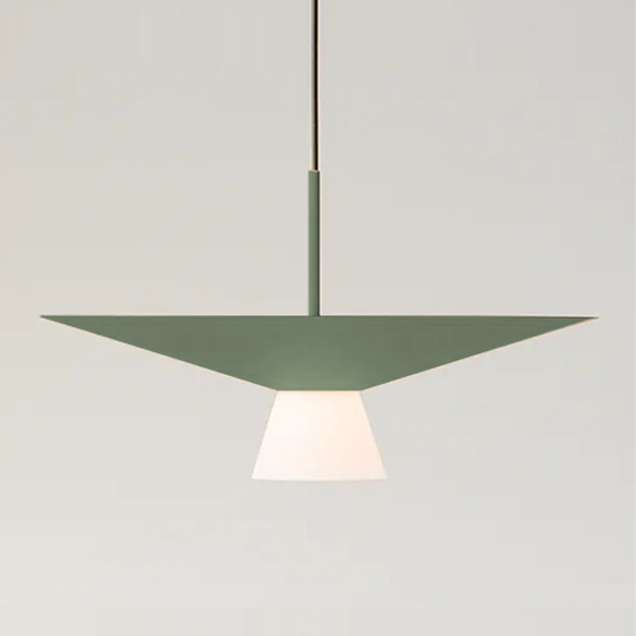 Lampa wisząca z metalowym korpusem, kablem tekstylnym, aluminiowymi i szklanymi kloszami. Dyfuzor z soczewki akrylowej (PMMA) i zintegrowana dioda LED. Szklane i metalowe klosze są opcjonalne i mogą być ustawione na różne sposoby i w różnych pozycjach, aby tworzyć różne projekty. Metalowy klosz jest dostępny w trzech rozmiarach i może być montowany w górę lub w dół podczas instalacji. Regulowana wysokość. Pojedynczy lub wielokrotny baldachim, odpowiedni do tworzenia różnych kompozycji Nadaje się do oświetlenia ogólnego, a także do bezpośredniego oświetlenia nad stołami jadalnymi, blatami, barami lub biurkami. Zalecamy umieszczenie źródła światła około 80 cm nad powierzchnią, aby zapewnić równomierne i wystarczające oświetlenie na obszarze o średnicy od 90 cm do 1 metra.