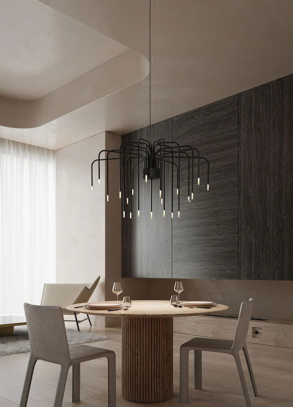 Eksplozja stylu i oryginalności – lampa wisząca Boom reinterpretuje koncepcję żyrandola, oferując nowoczesny i dynamiczny design. Jej 22 malowane aluminiowe ramiona tworzą lekką i imponującą konstrukcję, przypominającą fajerwerki, które powoli opadają z nieba, pozostawiając za sobą świetliste smugi, które łagodnie rozpływają się w powietrzu. Każdy element z gracją rozciąga się w przestrzeni, nadając lampie zawieszony i elegancki ruch, niczym świetlisty taniec zamrożony w czasie. Boom to prawdziwy hit, który dzięki połączeniu złożoności konstrukcji z wizualną lekkością potrafi przekształcić każdą przestrzeń w wyrafinowaną i teatralną oprawę.