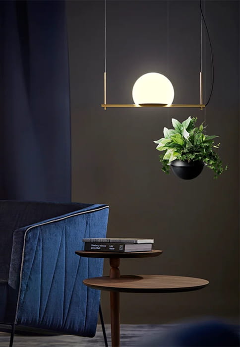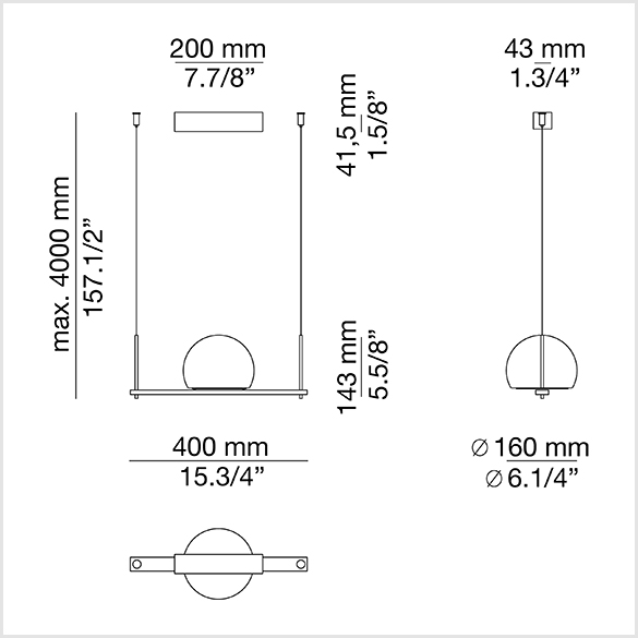 Metalowa lampa wisząca zapewniająca światło bezpośrednie i pośrednie. Szklane klosze i zintegrowana ściemnialna dioda LED. Regulowana wysokość i możliwość montażu w górę lub w dół.