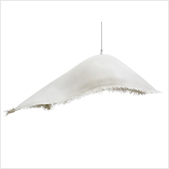 Lampa Moby Dick wisząca marki Karman Obszerny klosz lampy wiszącej Moby Dick jest wykonany z włókna szklanego i ma postrzępione krawędzie, co nadaje żyrandolowi coś niedoskonałego lub surowego. Klosz jest szorstki wewnątrz i gładki na zewnątrz. Nieprzypadkowo ta lampa wisząca z przyciągającym wzrok kloszem nosi nazwę Moby Dick, ponieważ kształt klosza rzeczywiście przypomina nieco wieloryba wynurzającego się z morskich głębin. Niezwykłe projekty opraw oświetleniowych to znak rozpoznawczy włoskiego producenta oświetlenia Karman. Matteo Ugolini, projektant Moby Dicka, jest dyrektorem artystycznym i głównym projektantem producenta oświetlenia, który ma siedzibę w Fossombrone w środkowych Włoszech. Produkty Karman są uosobieniem włoskiego wzornictwa i rzemiosła. Wyprodukowano we Włoszech.