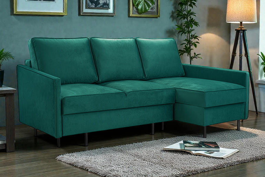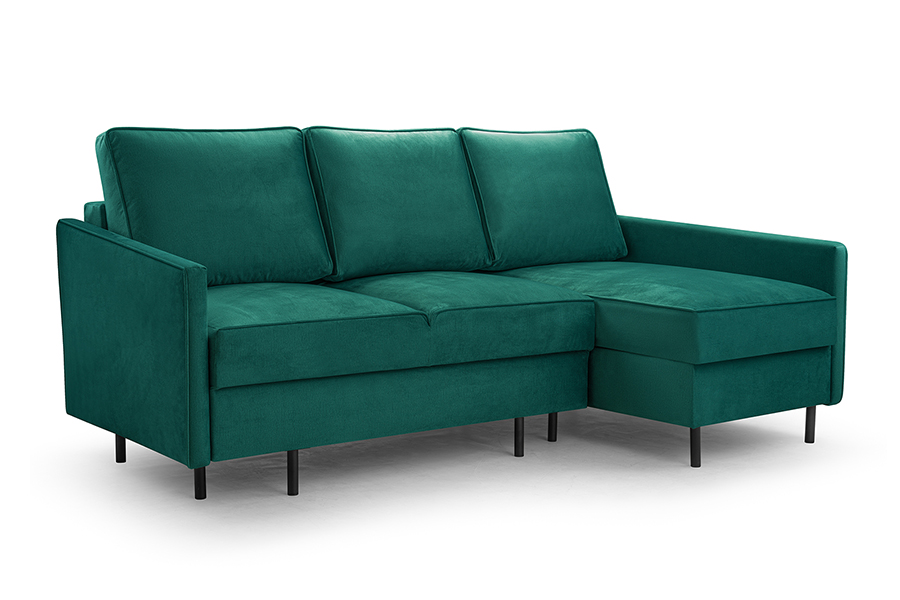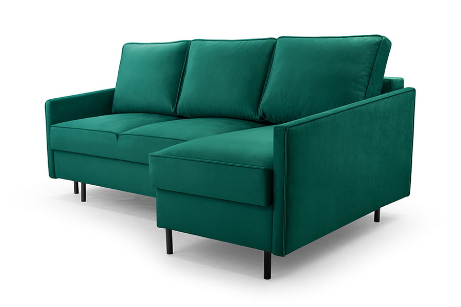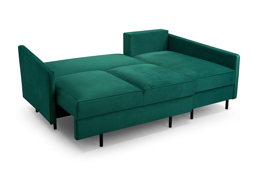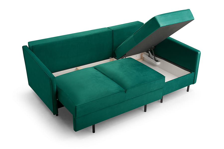 - narożnik z funkcją spania i pojemnikiem ( system DL to jeden z najprostszych systemów rozkładania, który stosowany jest zarówno w narożnikach, jak i w sofach. Rozłożenie mebla z tym systemem rozpoczynamy od wysunięcia siedziska. Następnie wystarczy położyć oparcie i mebel jest gotowy do spania. System DL nie wymaga odsuwania mebla od ściany, a w modelach z tym rodzajem rozkładania najczęściej znajduje się pojemnik na pościel )