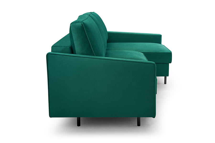 Narożnik Dylan to idealny mebel do nowoczesnych wnętrz, łączący prostotę z elegancją i komfortem. Wykonany z najwyższej jakości materiałów, z tapicerowanym tyłem, może stać na środku pomieszczenia. Dylan to nie tylko wygląd – to również funkcjonalność. Posiada rozkładaną funkcję spania oraz pojemnik na pościel, dzięki czemu świetnie sprawdzi się zarówno na co dzień, jak i podczas wizyt gości. Komfortowe siedzisko, wąskie podłokietniki i wysokiej jakości tkaniny zapewniają wygodę i trwałość przez długie lata. To mebel, który łączy w sobie subtelność formy z codzienną praktycznością.