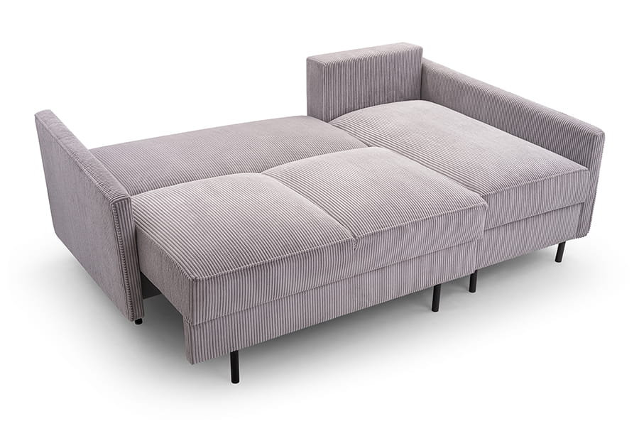 - narożnik z funkcją spania i pojemnikiem ( system DL to jeden z najprostszych systemów rozkładania, który stosowany jest zarówno w narożnikach, jak i w sofach. Rozłożenie mebla z tym systemem rozpoczynamy od wysunięcia siedziska. Następnie wystarczy położyć oparcie i mebel jest gotowy do spania. System DL nie wymaga odsuwania mebla od ściany, a w modelach z tym rodzajem rozkładania najczęściej znajduje się pojemnik na pościel )
