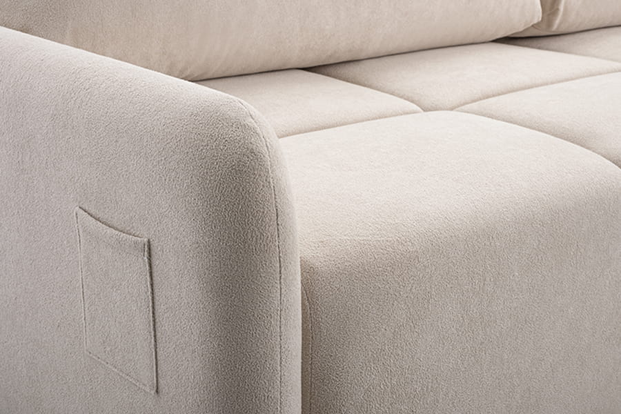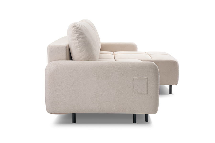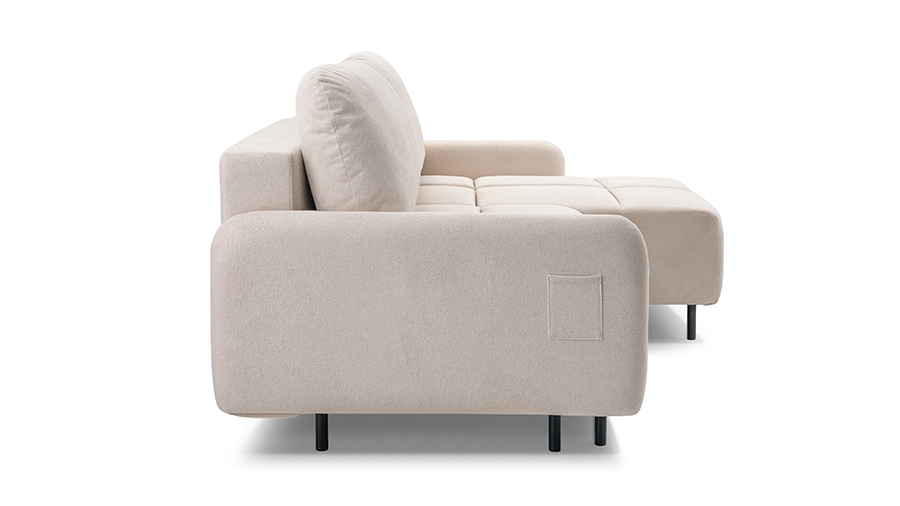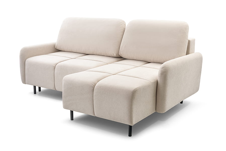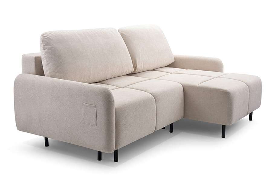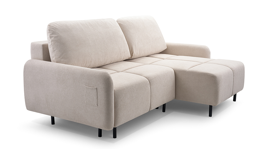 Narożnik Esteban z funkcją spania to udane połączenie komfortu, funkcjonalności i nowoczesnego designu. Dzięki dużej powierzchni do siedzenia, zachęca do relaksu wieczorami - podczas czytania, oglądania telewizji lub spotkań towarzyskich z przyjaciółmi. Dzięki zintegrowanej funkcji spania, narożnik można przekształcić w wygodne łóżko o wymiarach 188 x 130 cm w zaledwie kilku prostych krokach - idealne dla gości lub spontanicznych noclegów. Narożnik posiada również praktyczny schowek do przechowywania koców, poduszek lub pościeli. Solidna konstrukcja wykonana z drewna i płyty wiórowej oraz boki z drewna iglastego zapewnia wysoką stabilność i trwałość, a tapicerka wykonana z pianki i sprężyn falistych gwarantuje komfort siedzenia i leżenia. Wyjątkowy design, piękne tkaniny oraz najwyższa jakość wykonania sprawiają, że idealnie odnajdzie się zarówno w mniejszych mieszkaniach, jak i w przestronnych salonach. Narożnik Esteban to propozycja dla osób, które cenią elegancję, funkcjonalność i komfort na co dzień.
