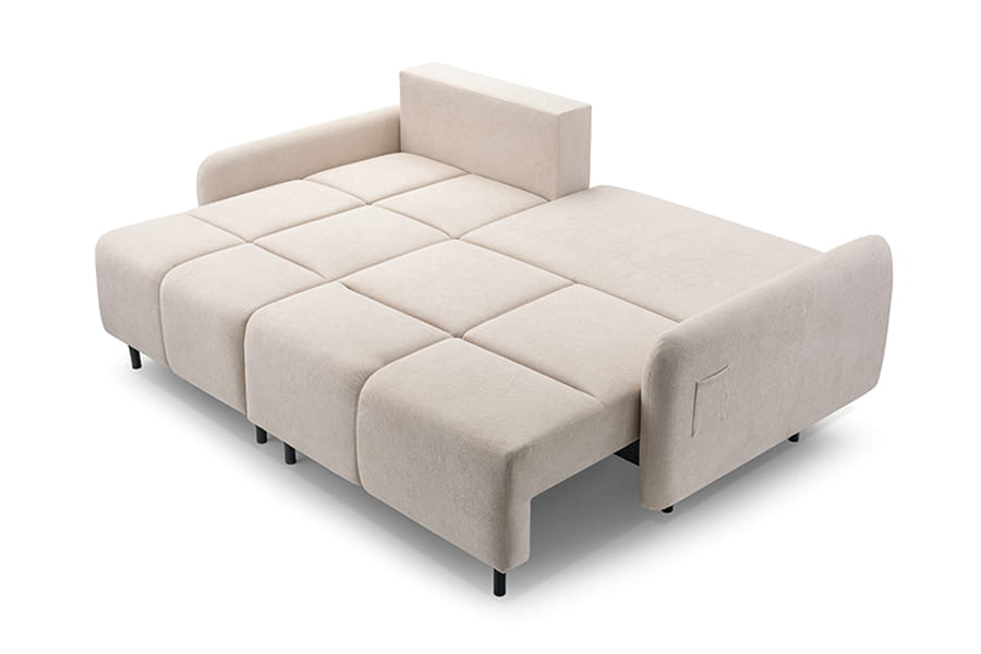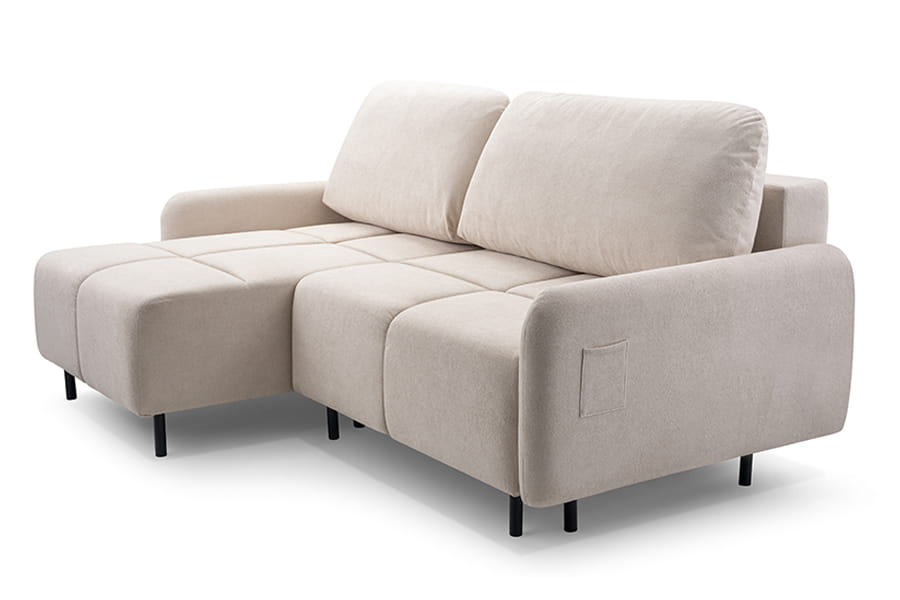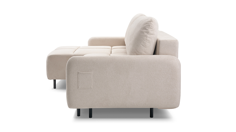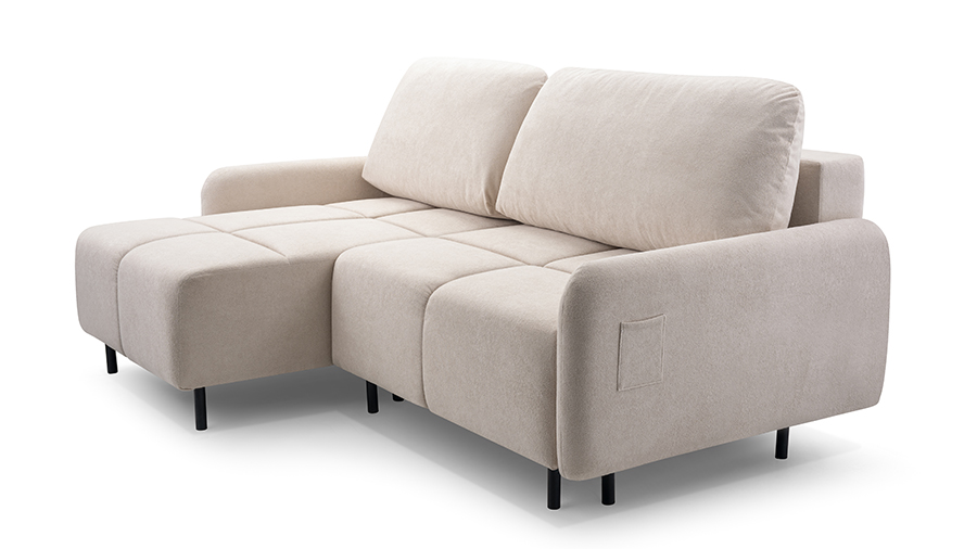 Narożnik Esteban z funkcją spania to udane połączenie komfortu, funkcjonalności i nowoczesnego designu. Dzięki dużej powierzchni do siedzenia, zachęca do relaksu wieczorami - podczas czytania, oglądania telewizji lub spotkań towarzyskich z przyjaciółmi. Dzięki zintegrowanej funkcji spania, narożnik można przekształcić w wygodne łóżko o wymiarach 188 x 130 cm w zaledwie kilku prostych krokach - idealne dla gości lub spontanicznych noclegów. Narożnik posiada również praktyczny schowek do przechowywania koców, poduszek lub pościeli. Solidna konstrukcja wykonana z drewna i płyty wiórowej oraz boki z drewna iglastego zapewnia wysoką stabilność i trwałość, a tapicerka wykonana z pianki i sprężyn falistych gwarantuje komfort siedzenia i leżenia. Wyjątkowy design, piękne tkaniny oraz najwyższa jakość wykonania sprawiają, że idealnie odnajdzie się zarówno w mniejszych mieszkaniach, jak i w przestronnych salonach. Narożnik Esteban to propozycja dla osób, które cenią elegancję, funkcjonalność i komfort na co dzień.