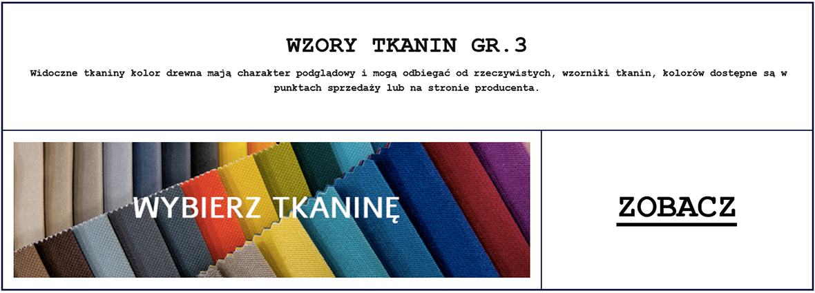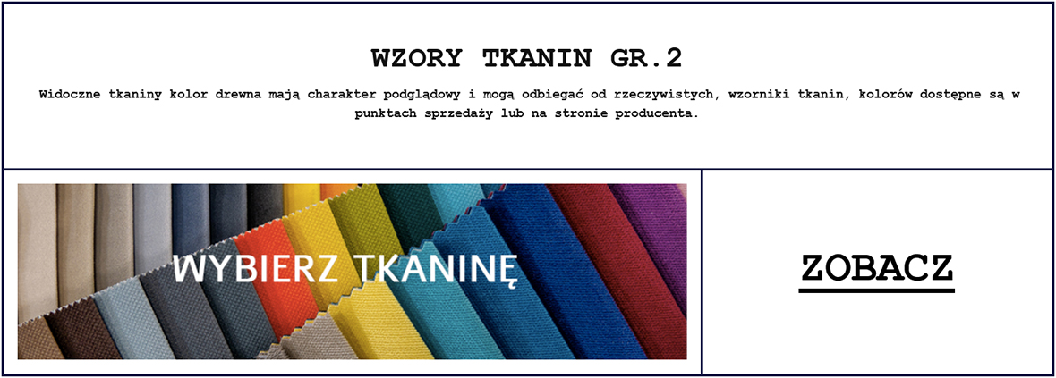 - po dokonaniu wyboru koloru obicia prosimy napisać w uwagach - nazwę oraz numer tkaniny