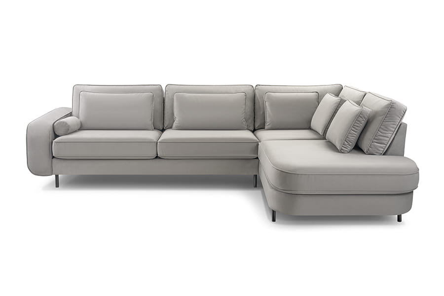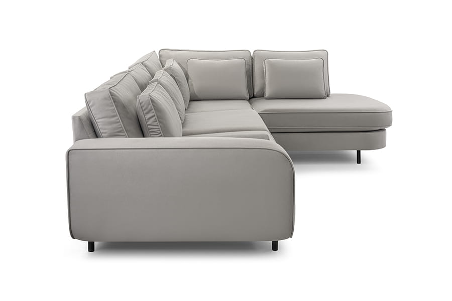 Narożnik Kolorado to połączenie przemyślanej konstrukcji, solidności i dużej ilości przestrzeni relaksacyjnej. Wyróżnia się nowoczesną linią oraz starannie dopracowanymi detalami, zapewniając wygodę na lata. Kolorado został zbudowany na drewnianym szkielecie z dodatkiem płyt MDF i wiórowych. Siedzisko wspierają sprężyny faliste, które zapewniają elastyczność oraz brak wrażenia zapadania się podczas codziennego użytkowania. Oparcie i boki wykonane są z surowca iglastego, co dodatkowo zwiększa ich odporność na uszkodzenia mechaniczne. Całość opiera się na metalowych, łatwo demontowanych nóżkach.Obszerna powierzchnia oraz zestaw poduszek (5 poduszek oparciowych, 5 dekoracyjnych, 1 wałek) sprzyjają relaksowi niezależnie od trybu dnia. Optymalna wysokość siedziska (51 cm) docenią zarówno dorośli, jak i dzieci. Narożnik występuje w wersji prawo- lub lewostronnej.