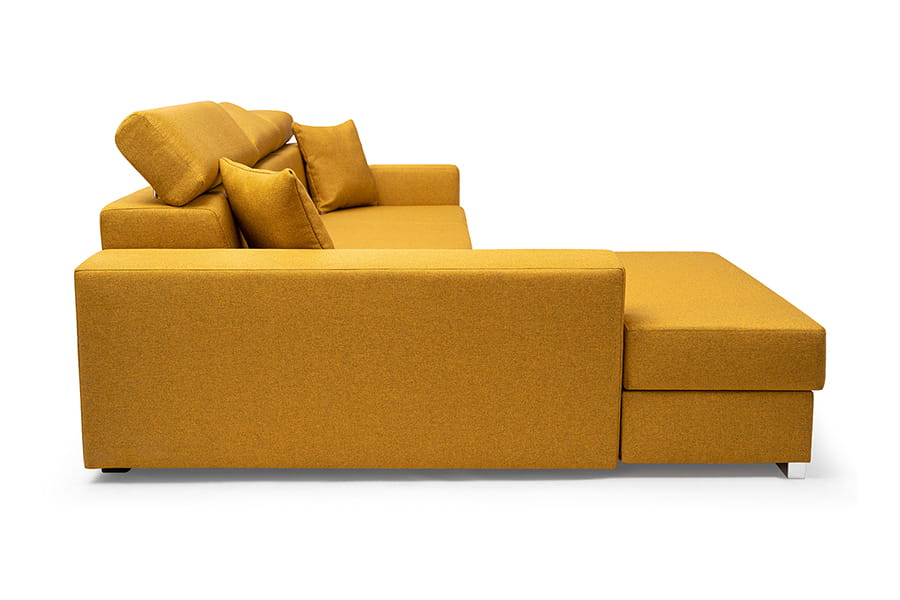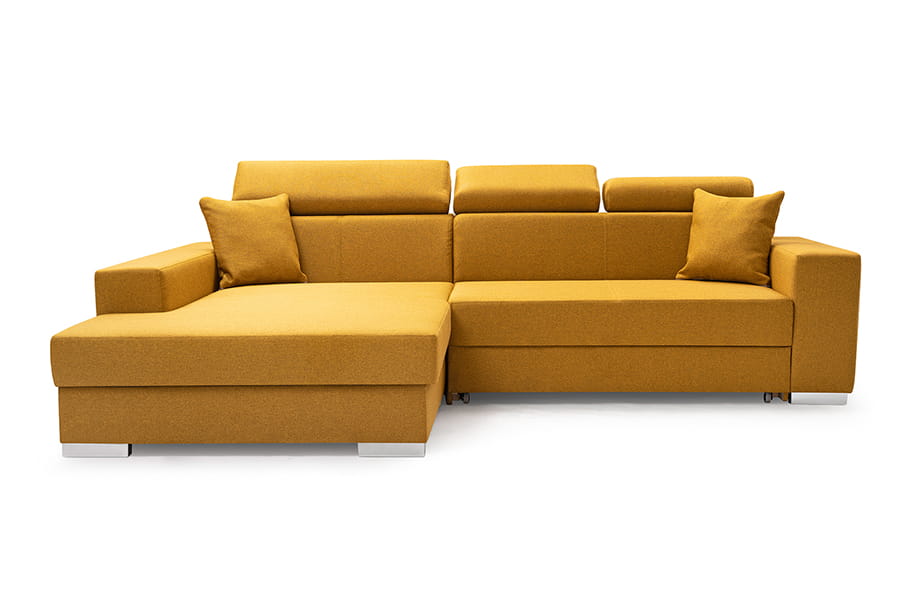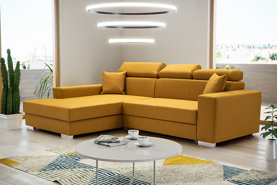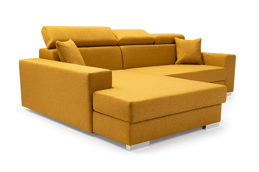 Nowoczesny narożnik rozkładany Manhattan De Lux do salonu który został zaprojektowany w funkcjonalny i przemyślany sposób oraz wykonany z najlepszych materiałów. Prosta bryła o standardowym dla tego rodzaju mebli rozmiarze pozwala na idealne dopasowanie narożnika do każdego pomieszczenia. Subtelne, srebrne nóżki w połączeniu z elegancką tkaniną idealnie dopełniają kompozycję tego mebla. Wygodne oparcie oraz regulowane zagłówki zagwarantują, że każdy znajdzie na nim komfortową pozycję. Narożnik wyposażony został w pojemny schowek na pościel w otomanie, dzięki czemu przechowywanie jej nie będzie stanowiło więcej problemu. Intuicyjny system rozkładania z systemem 'delfin' pozwala przekształcić narożnik w łóżko o powierzchni spania 211 na 130 cm. Nowoczesny narożnik Manhattan De Lux zaprojektowany i wykonany został w Polsce co jest gwarancją jakości, dostępny w wersji prawo lub lewo stronnej.