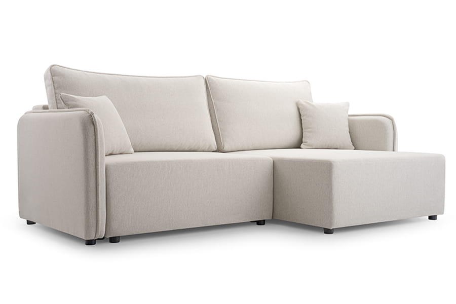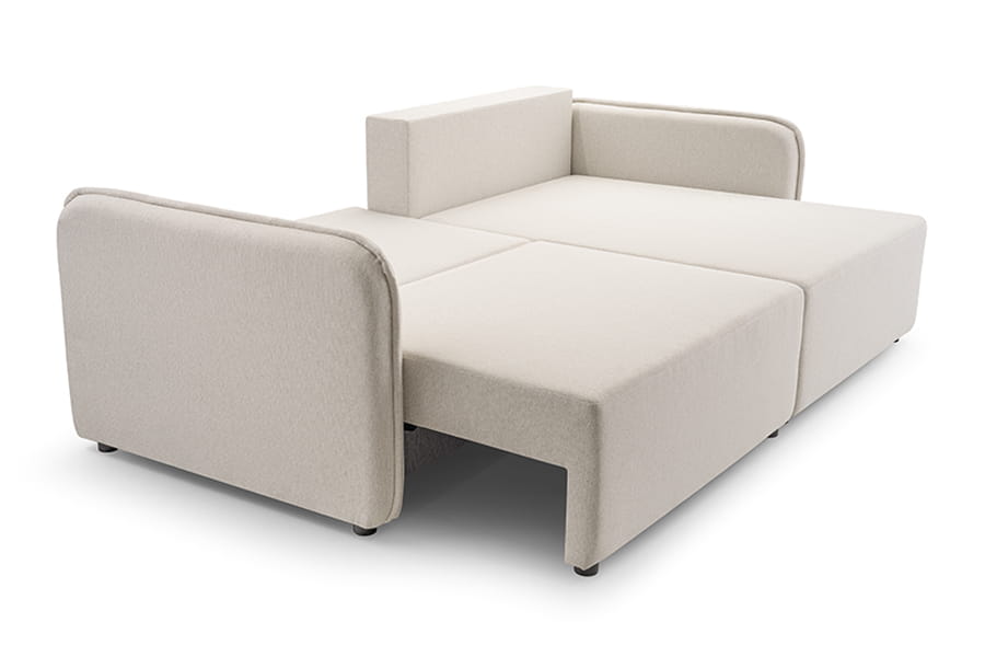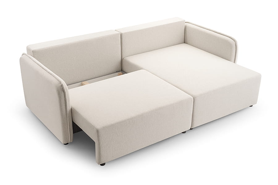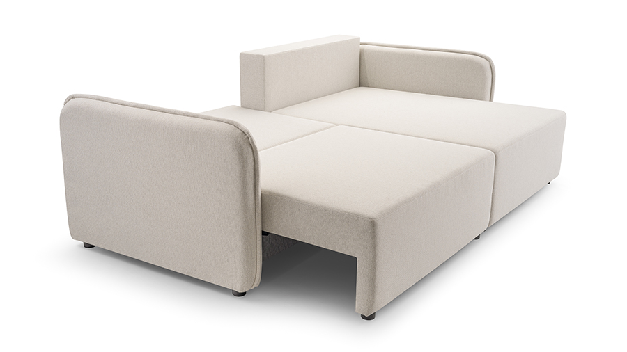 - narożnik z funkcją spania i pojemnikiem ( system DL to jeden z najprostszych systemów rozkładania, który stosowany jest zarówno w narożnikach, jak i w sofach. Rozłożenie mebla z tym systemem rozpoczynamy od wysunięcia siedziska. Następnie wystarczy położyć oparcie i mebel jest gotowy do spania. System DL nie wymaga odsuwania mebla od ściany, a w modelach z tym rodzajem rozkładania najczęściej znajduje się pojemnik na pościel )