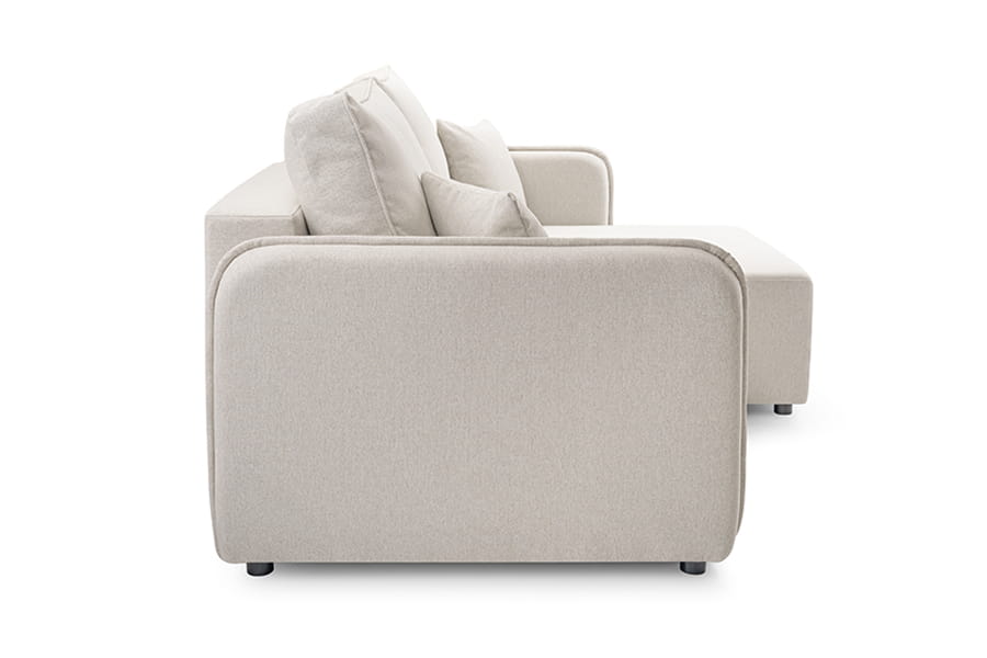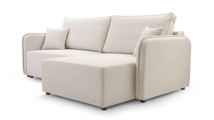 Narożnik Noah to elegancja w nowoczesnym wydaniu. Jego miękkie linie i dopracowane detale sprawiają, że przyciąga wzrok, a jednocześnie doskonale wpisuje się w różne style wnętrz – od przytulnych, po bardziej minimalistyczne. Noah to nie tylko wygląd – to również funkcjonalność. Posiada rozkładaną funkcję spania oraz pojemnik na pościel, dzięki czemu świetnie sprawdzi się zarówno na co dzień, jak i podczas wizyt gości. Komfortowe siedzisko, szerokie podłokietniki i wysokiej jakości tkaniny zapewniają wygodę i trwałość przez długie lata. To mebel, który łączy w sobie subtelność formy z codzienną praktycznością.