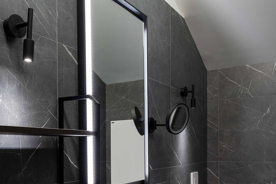 - Płyta ścienna z odlewanego ciśnieniowo aluminium w kolorze białym, szampańskim, matowym czarnym, brązowym lub tytanowym lakierem poliakrylowym.