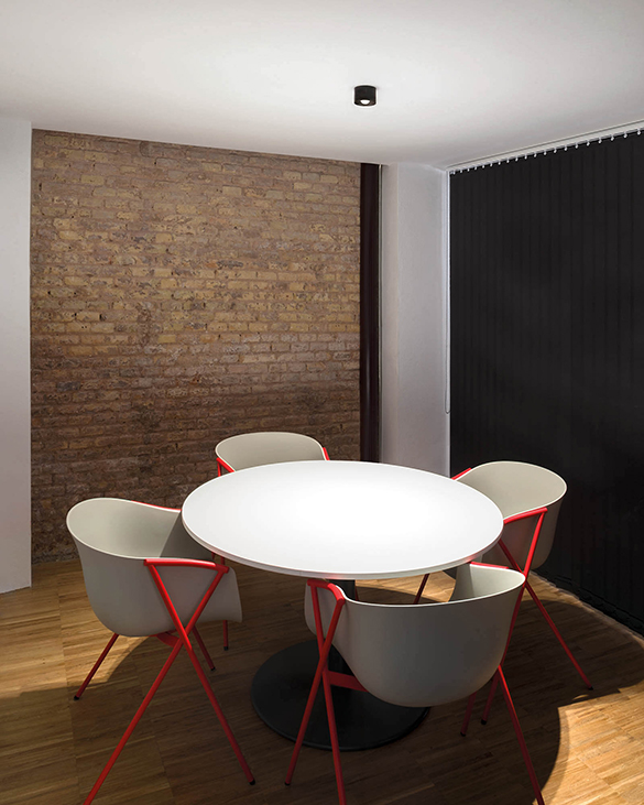 Puck został zaprojektowany do pełnienia funkcji oświetlenia ogólnego, a ponadto, biorąc pod uwagę jego ultra kompaktowy format, ma na celu zachowanie dyskrecji w miejscach, w których nie ma możliwości wbudowania urządzeń w sufit. Minimalistyczna prezencja Pucka jest formalnie podsumowana w okrągłym elemencie, w całości wykonanym z aluminium.