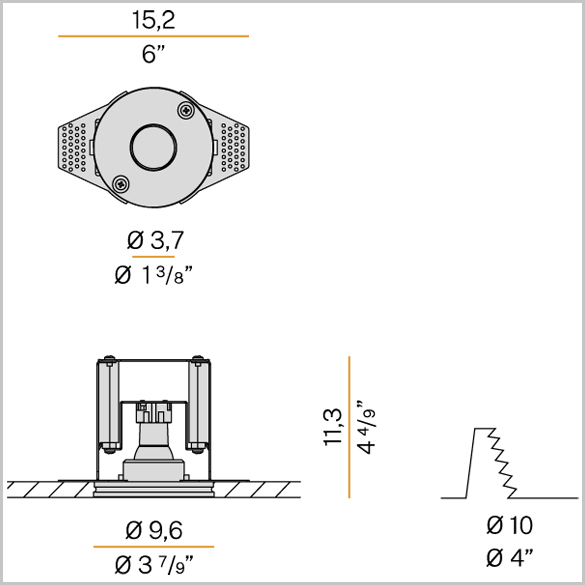 - Wymiary wbudowanego otworu: Ø 100 mm (ø 3,9")